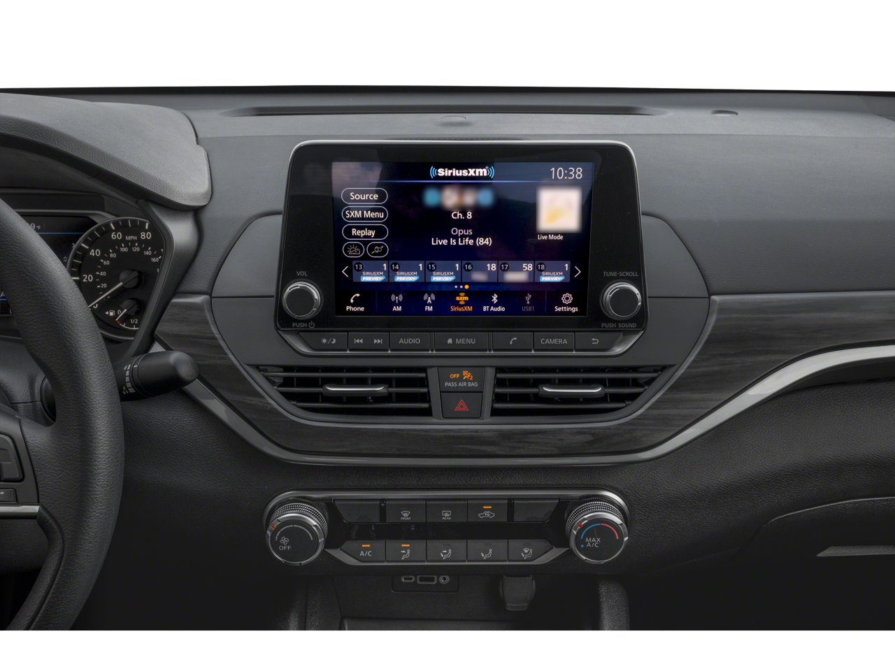 - Radio: AM/FM Audio System -inc: RDS, MP3 and aux-in, 6 speakers, NissanConnect 8" color display w/multi-touch control, Bluetooth® hands-free phone system, hands-free text messaging assistant, streaming audio via Bluetooth®, 2 front illuminated USB ports (1 type-A and 1 type-C) for compatible devices, Apple CarPlay, Android Auto, SiriusXM Radio, Siri Eyes Free and Google Assistant voice recognition