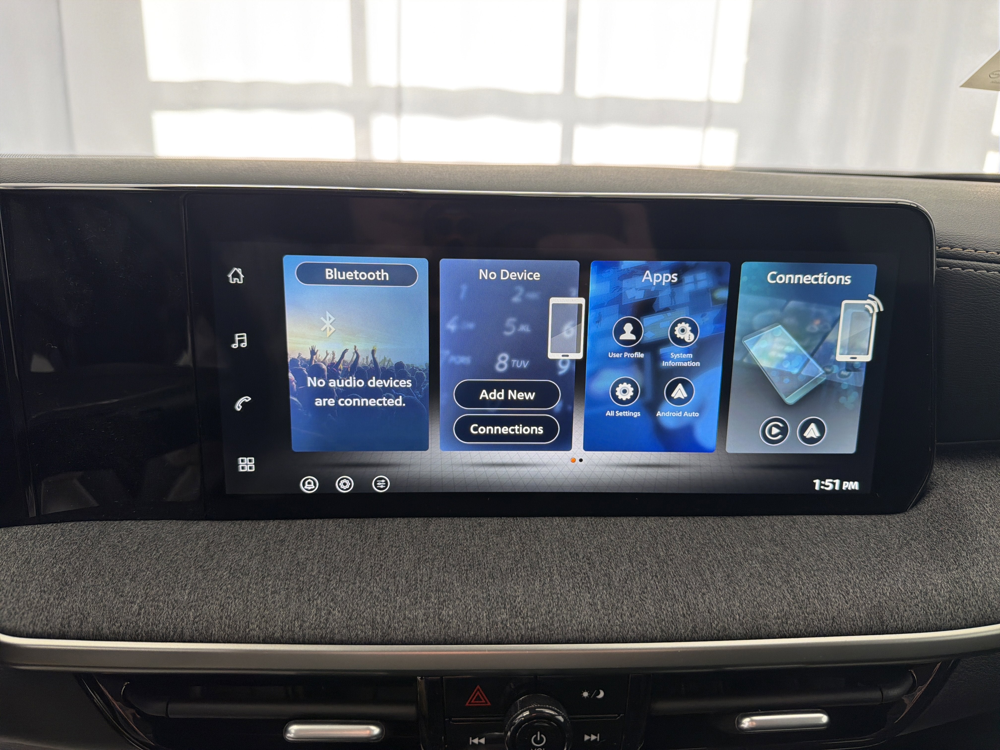 - Radio: AM/FM/SiriusXM Audio System -inc: 12.3" color touchscreen display w/4 speakers, Bluetooth® hands-free phone system, streaming audio via Bluetooth®, NissanConnect featuring wireless Apple CarPlay, wireless Android Auto, Siri eyes free and hands-free text messaging assistant, audio and Bluetooth® steering wheel switches