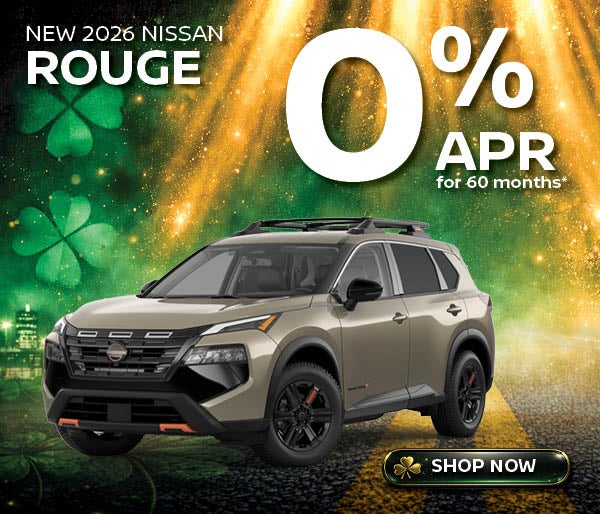 *Available on 2026 Nissan Rogue from new dealer stock. Example: 0% APR financing for 60 months at $16.67/month per $1,000 financed. Actual down payment may vary. Subject to residency restrictions. Subject to NMAC credit approval. Not all buyers qualify. Dealer contribution may affect actual price set by dealer. Contact dealer for details. Ends 03/31/2026.
